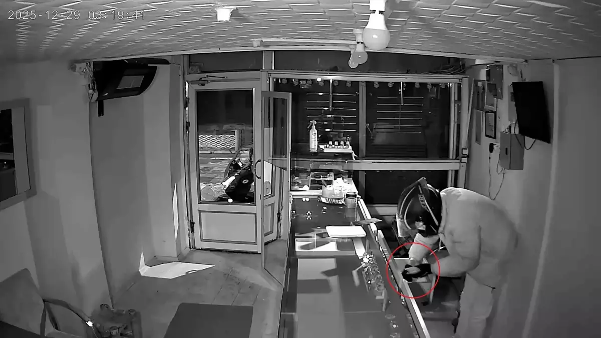 IĞDIR’da kuyumcu dükkanından 5,5 kilo altın çalan hırsız, güvenlik kamerasına yakalandı. Olay, saat 03.00 sıralarında Cumhuriyet Caddesi’nde bulunan Habip Temirak’a ait kuyumcu dükkanında meydana geldi. Hırsız, kapının kepengini açarak içeri girdi ve motosiklet kaskıyla tezgahın arkasındaki altınları çalarak kaçtı.