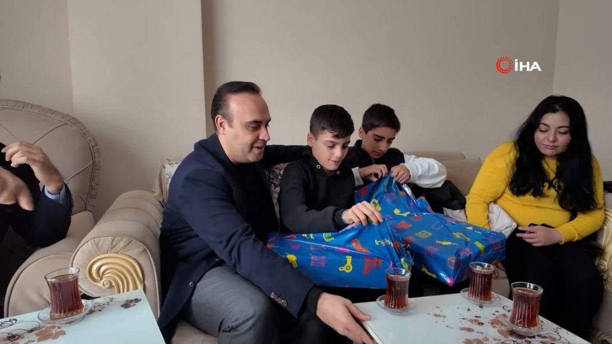 Sıcak diyalogların geçtiği evde Bakan Kacır çocuklara diz üstü bilgisayar ile TEKNOFEST montu hediye etti.