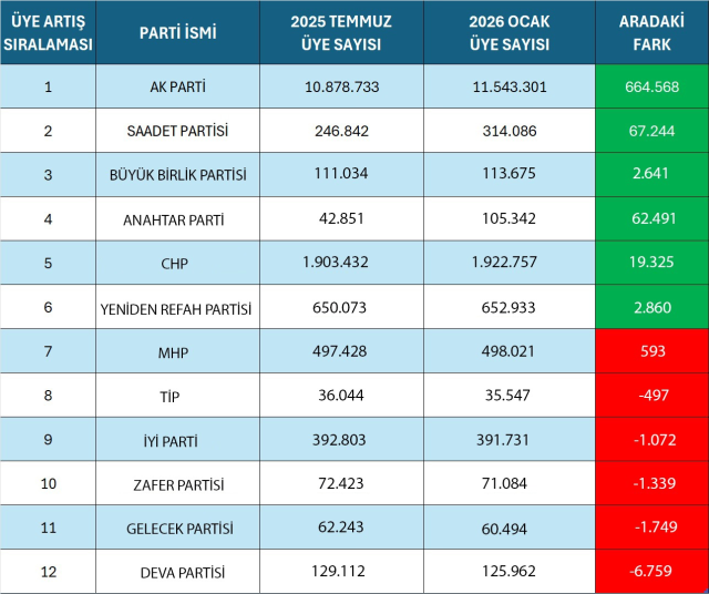 İşte, siyasi partilerin güncel üye sayıları: